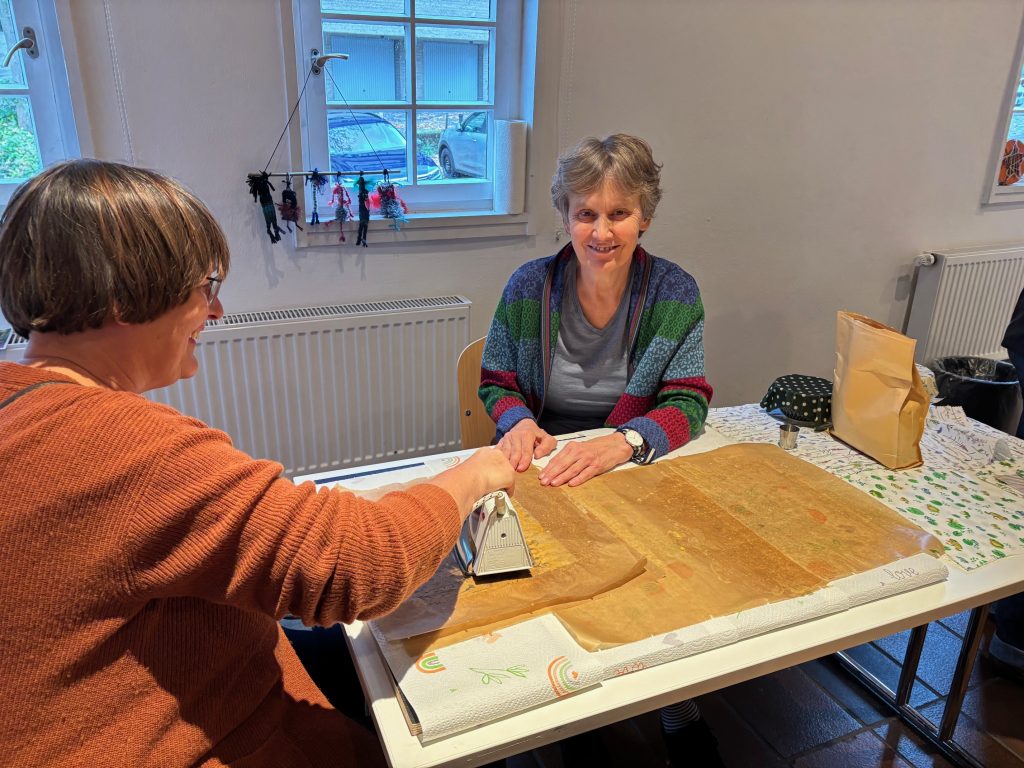 Highlife beim Bienenwachsworkshop im Museum in Bensberg im Oktober -Bienenwachstücher, Bodybutter, gerollte Kerzen, Creme und Lippenpflege wurden mit Hingabe hergestellt. Full House, große Begeisterung bei Klein und Groß.
