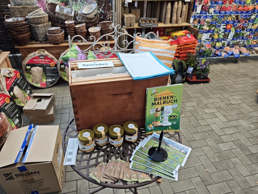 Am 4. und 25. Oktober verschenkte der Bienenzuchtverein Bergisch Gladbach in der Gartenbaumschule Becker bienenfreundliche Pflanzen. Insgesamt 100 Pakete bestehend aus Gehölzern und Stauden wurden verteilt, dazu gab es Samen für Wildblumenwiesen, Informationen zu Bienen und viele nette Gespräche. Die gelungene Aktion wurde vom Ministerium für Umwelt und Naturschutz, dem Bienenzuchtverein sowie Blühendes GL finanziert, um das lokale Futterangebot nicht nur für Honigbienen, sondern auch für Wildbienen und andere Insekten zu fördern.