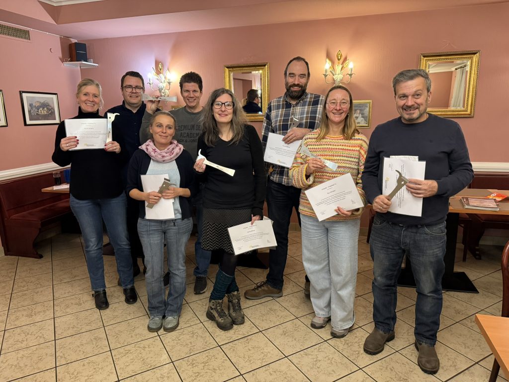Zum Jahresabschluss bekamen die diesjährigen Kursteilnehmer des Imkerlehrgangs feierlich ihre Urkunden überreicht. Außerdem gab es als persönliches Geschenk einen besonderen Stockmeißel dazu: